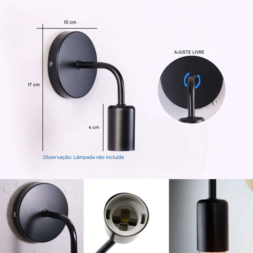 OBS: A imagem da arandela na cor branca é meramente ilustrativa. A base que vai diretamente na parede é só em madeira igual a arandela na cor preta como na foto aqui publicada.