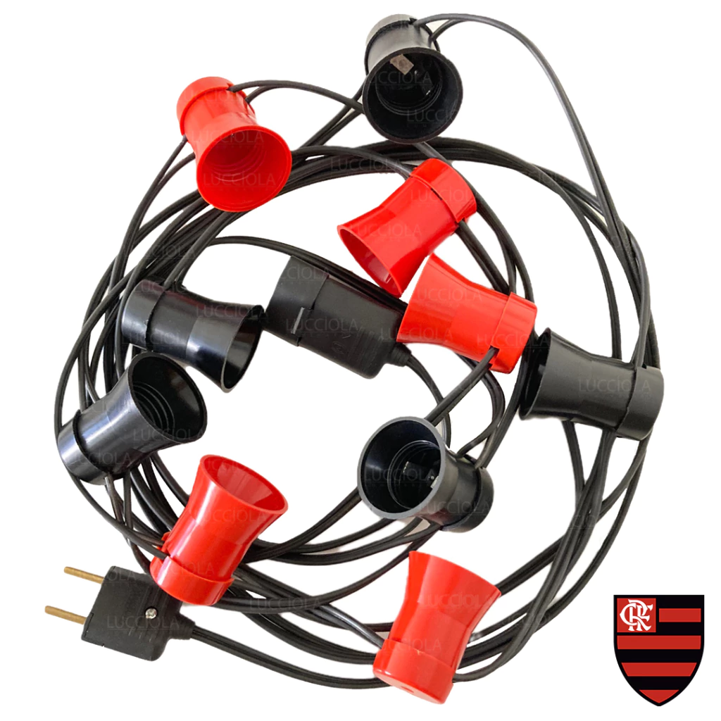 O varal é vendido sem as lâmpadas, permitindo que você personalize a iluminação com as cores oficiais do seu time!